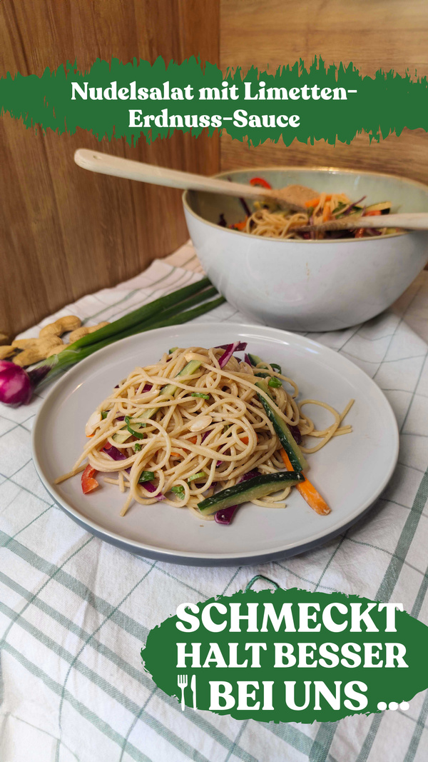 Nudelsalat mit Limetten-Erdnuss-Sauce