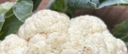 Innerhalb der Laubblätter wachsen die kleinen Blumenkohlröschen geschützt vor den Sonnenstrahlen heran. Sie sind sehr empfindlich gegenüber zu starker Sonneneinstrahlung. Deshalb werden kurz vor der Ernte die Blätter nach innen geknickt, um die Röschen vor der Sonne zu schützen. Dabei kann es aber auch passieren, dass manche Stellen nicht mit abgedeckt werden und so doch Sonnenstrahlen an die Röschen herankommen. Dadurch entstehen hellbraune Flecken, die aber nicht matschig sind und den Blumenkohl auch nicht ungenießbar machen.