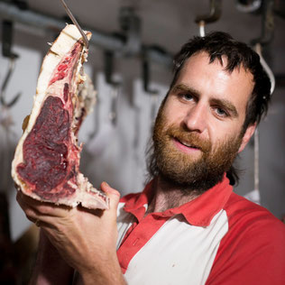 Das Rindfleisch erhält die Metzgerei von vielen verschiedenen Höfen der Region. Ein Teil des Rindfleisches stammt von Milchviehbetrieben, wie beispielsweise dem Eschenhof. Dort werden die Kühe noch mit Hörnern nach Demeter-Richtlinien gehalten und gefüttert.