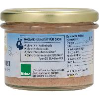 41% Schweinefleisch*, 19% Schweineleber*, Schweinespeck*, Schweinekopffleisch*, Schweineschwarten*, Zwiebeln*, Meersalz, Gewürze* (Pfeffer*,