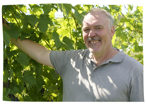 Geboren und aufgewachsen auf einem Demeter-Betrieb in Queckborn, nur 40 km von Großseelheim entfernt, lernte Hubert Junker von klein auf was Biolandbau bedeutet. Er vertiefte sein Wissen während seines Landwirtschaftsstudiums in Witzenhausen und sammelte anschließend viele Erfahrungen in Kanada. Von dort hat er viele spannende Ideen in die Heimat mitgenommen, vor 12 Jahren startete er auf ehemaligen Ackerböden seinen Obstanbau. Wunderschön am Hang gelegen und in Waldnähe, mit einem tollen Ausblick über den Taunus und den Vogelsberg, wachsen jetzt 13 verschiedene Sorten Trauben auf etwa 1 ha Weinbau.