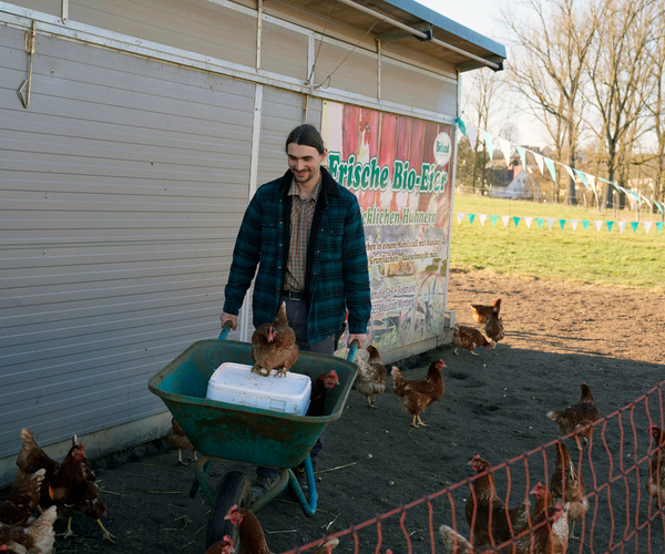 Auf dem Bioland Betrieb Riedmühle betreiben Janina und Benedikt Saßmann-König ein wahres Hühnerparadies.
