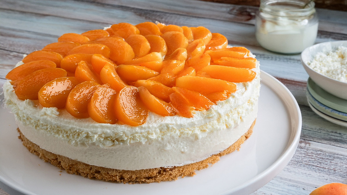 schneiden. Den Formboden mit den Aprikosenspalten auslegen