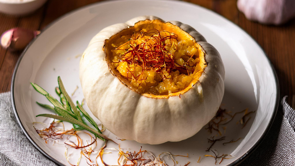 Gefüllter Ufo Kürbis mit gebackenem Livarot