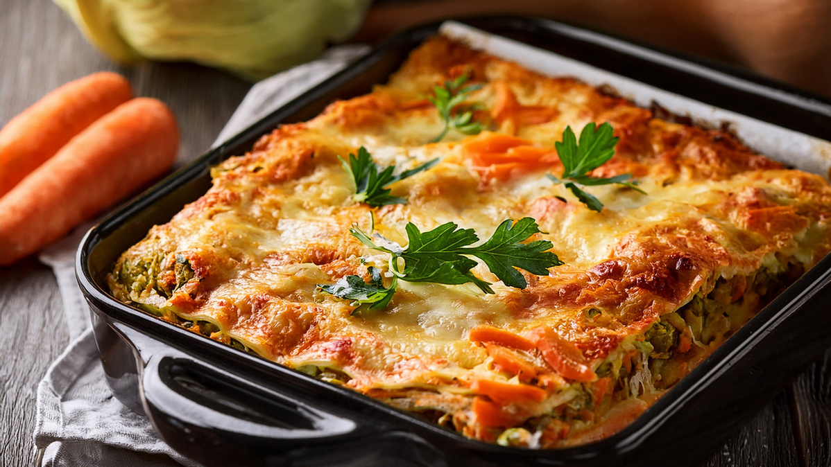 Zu guter Letzt noch den frisch geriebenen Käse obendrauf verteilen und die Gemüselasagne auf einem Rost, zweite Schiene von unten, für ca. 30 Minuten im Backofen überbacken.