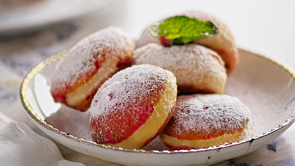 Nachdem die Berliner ausgekühlt sind, die Marmelade in einen Spritzbeutel mit langer Tülle geben und in die Berliner spritzen. Zum Schluss das Gebäck im übrigen Zucker wälzen oder mit Puderzucker bestreuen.