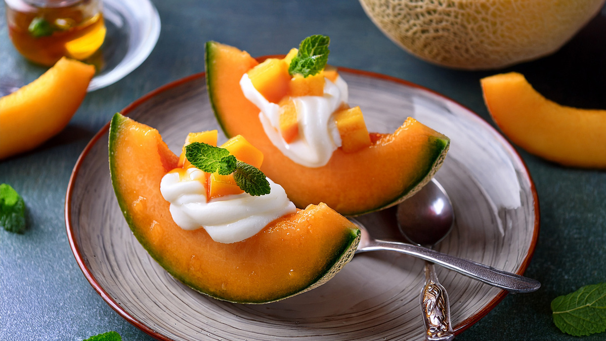 Melone mit Pfirsichsahne
