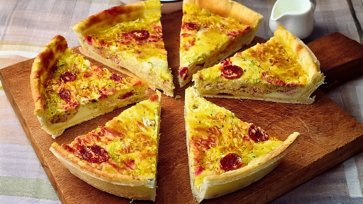 Die Quiche im Ofen (Mitte) ca. 45 Minuten backen, bis sie schön gebräunt ist.