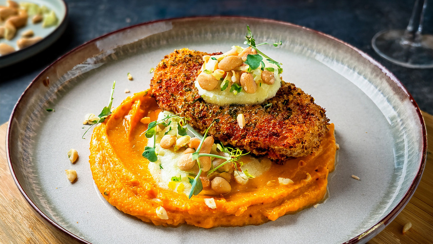 Gefüllte Knollensellerie-Käse-Schnitzel in Nuss-Panade